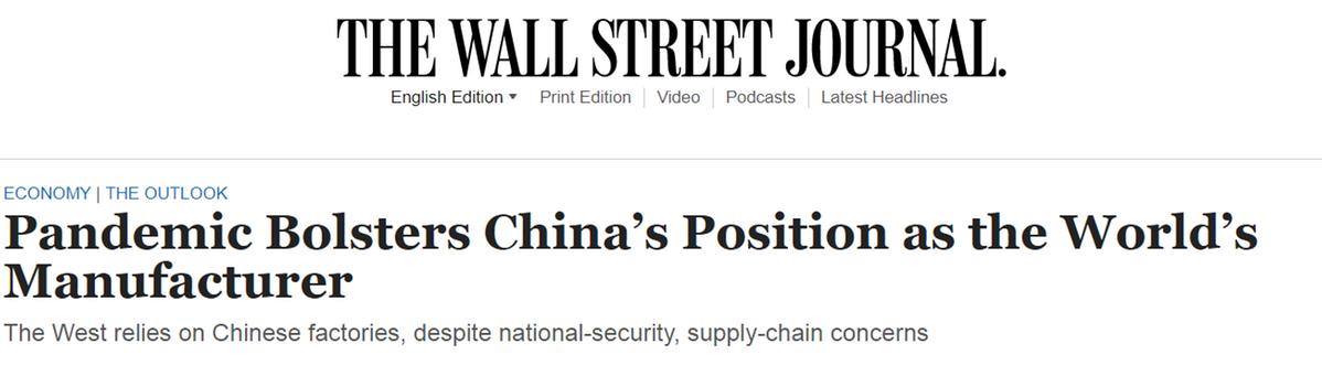 中(zhong)國日報網(wang)12月17日電 盡(jin)管美西方(fang)國家近期(qī)都在談論(lùn)減少對中(zhong)國制造的(de)依賴,但在(zai)過去兩年(nián)裡,中國鞏(gǒng)固了其作(zuo)為全球主(zhu)要制造商(shāng)品供應國(guó)的地位。